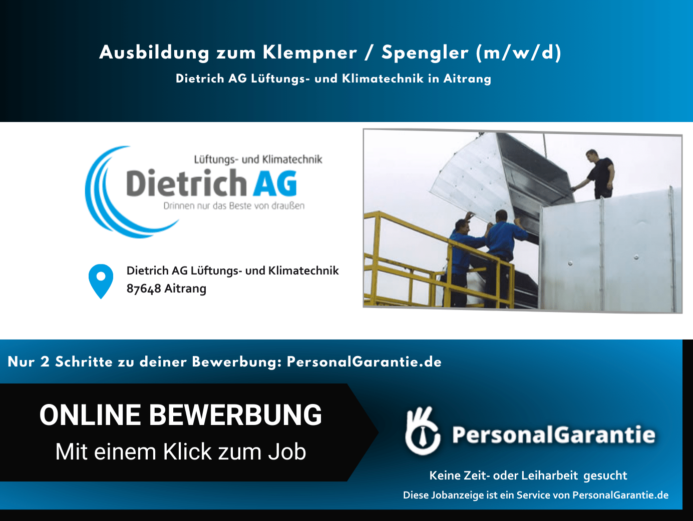 Wir bieten zum 1. September 2026 einen Ausbildungsplatz zum Klempner (m/w/d)